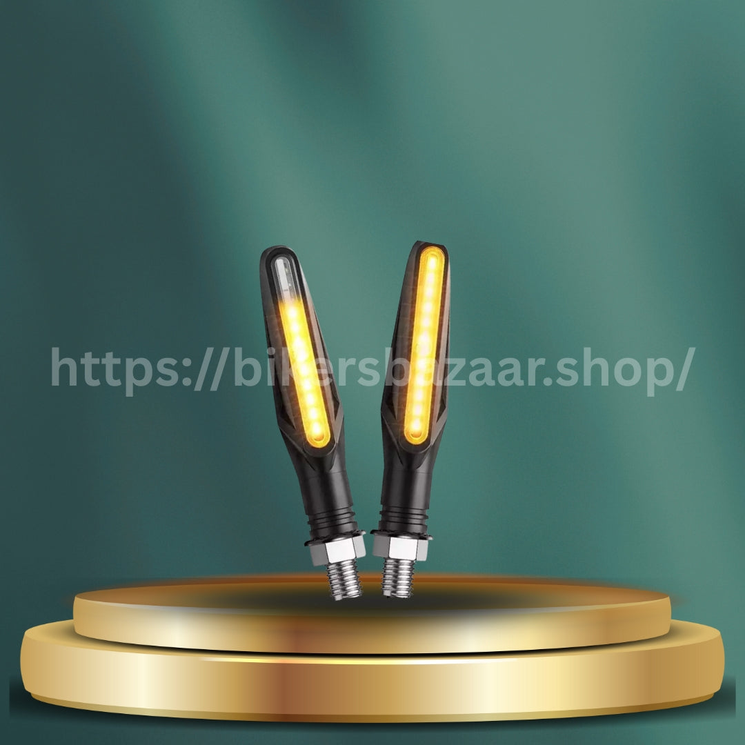 Audi Style Bike Indicators Pakistan, Running LED Turn Signal for Motorcycles, Sequential LED Indicators for Bikes, Universal Flowing LED Signal Lights, Modified Bike Accessories Pakistan, Motorcycle Audi Style Lights.